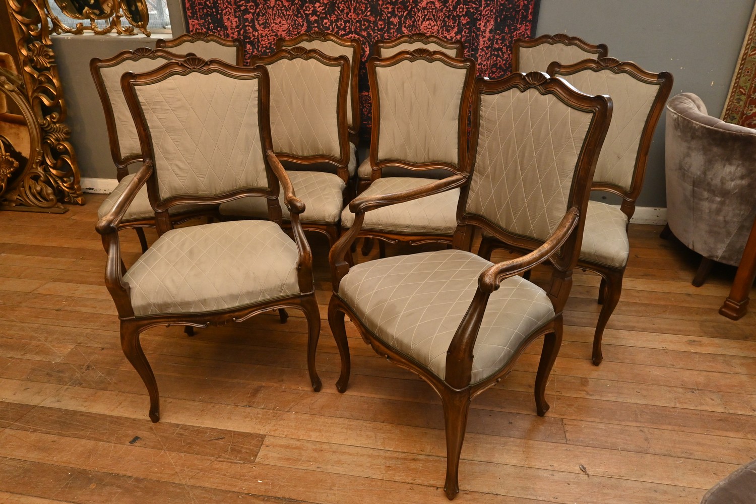 A SET OF TEN FRENCH STYLE UPHOLSTERED DINING CHAIRS (A/F) (107H X 63W X 55D CM) (LEONARD JOEL DELIVERY SIZE: X-LARGE)