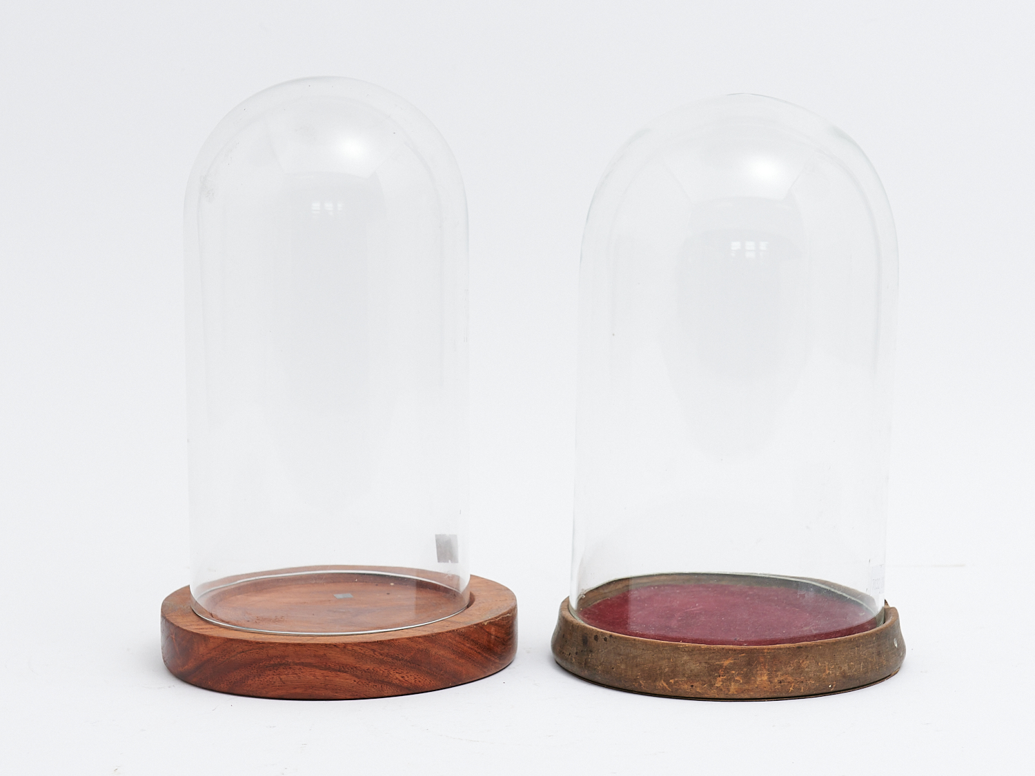 TWO GLASS DOMES ON WOODEN MATCHED BASES (A/F), H.25CM, LEONARD JOEL LOCAL DELIVERY: SMALL