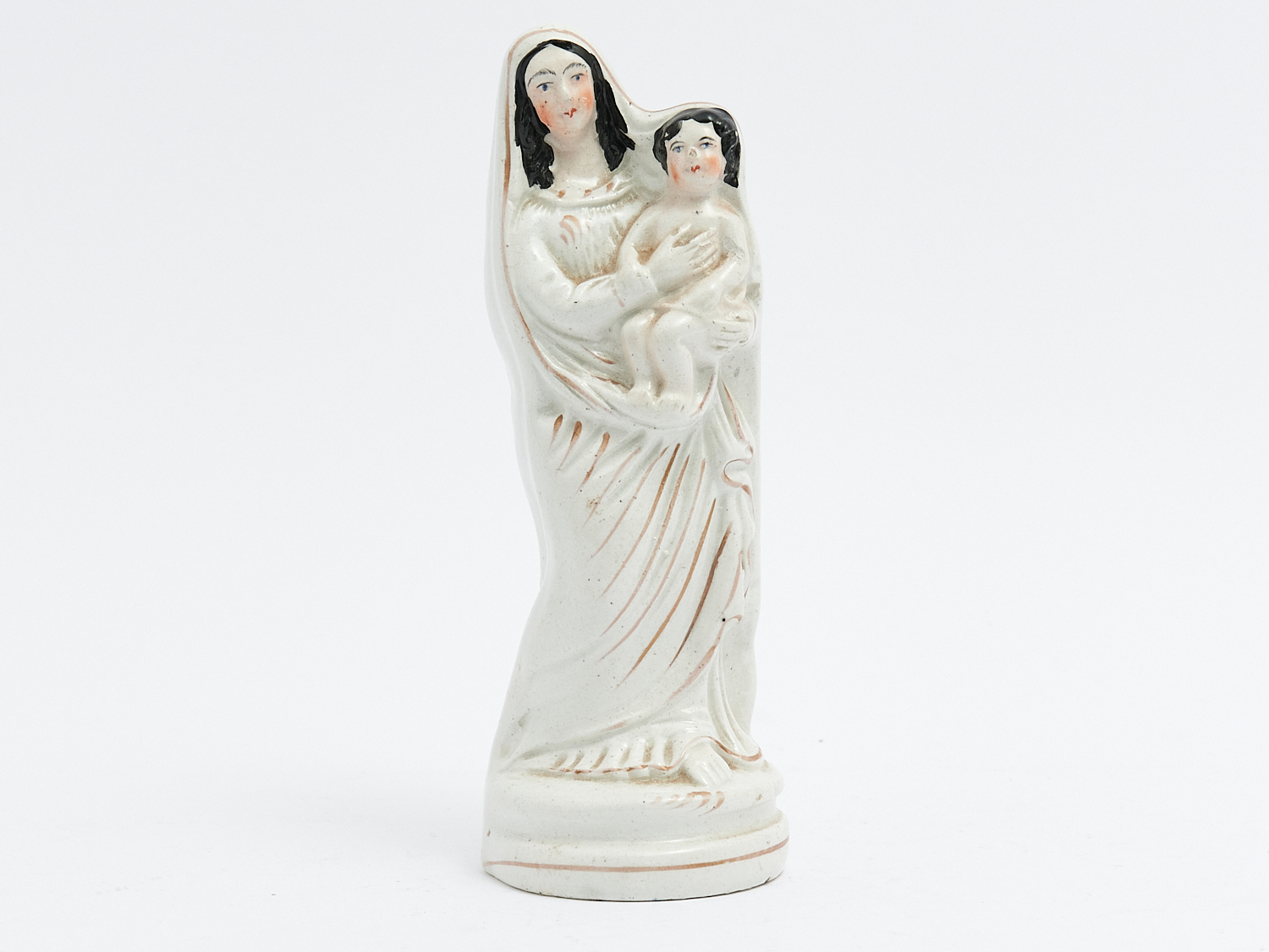 A STAFFORDSHIRE FIGURE OF MARY AND JESUS (A/F), H.19CM, LEONARD JOEL LOCAL DELIVERY: SMALL