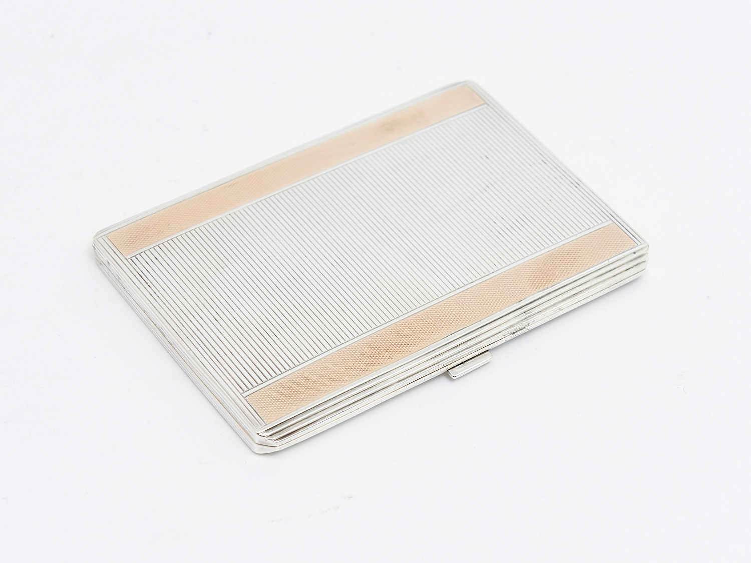 AN ENGINE TURNED CIGARETTE CASE MARKED 'STERLING' H.11.5CM, LEONARD JOEL LOCAL DELIVERY: SMALL