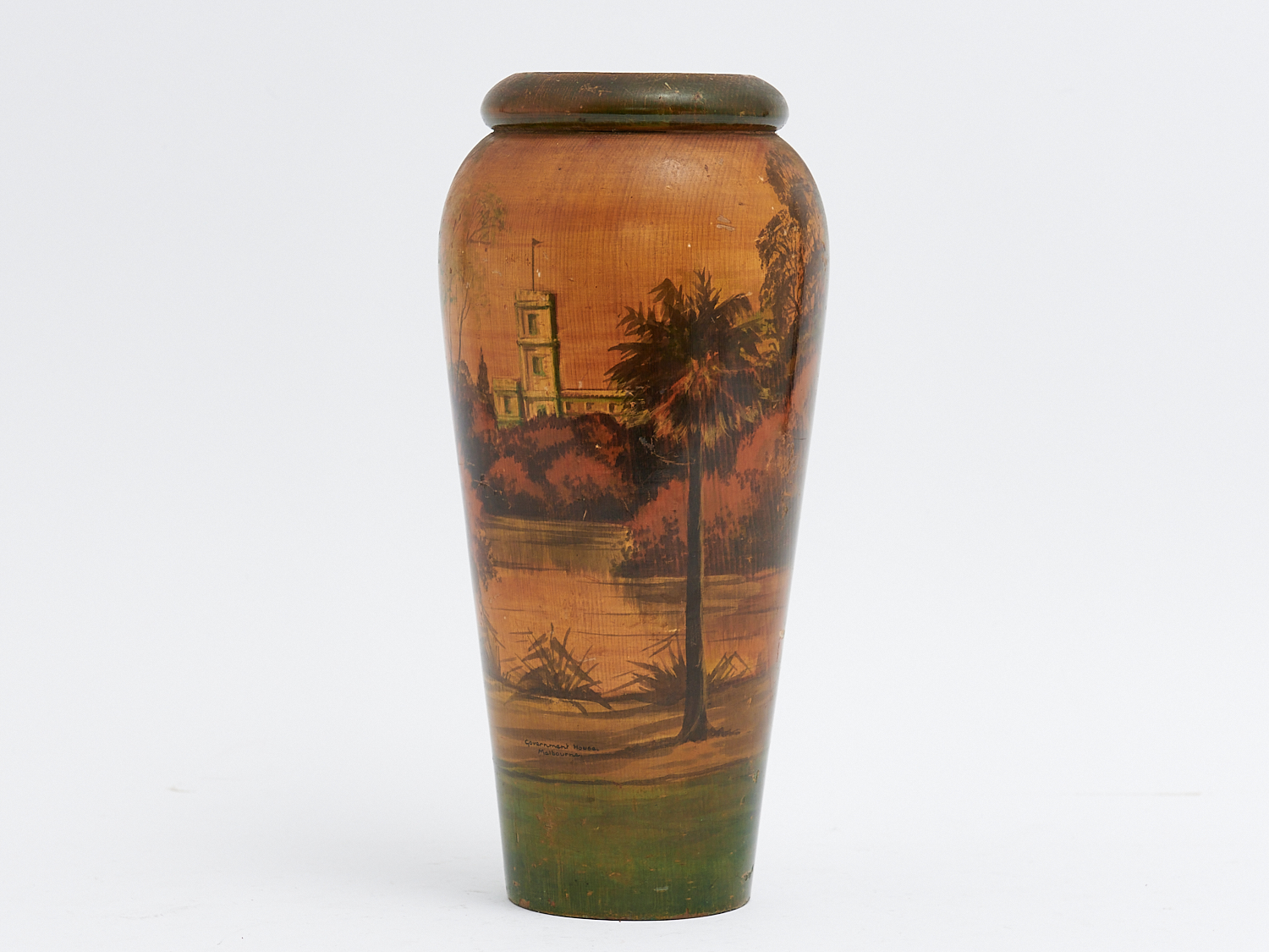 A TURNED WOOD VASE, GOVERNMENT HOUSE MELBOURNE H.25CM, LEONARD JOEL LOCAL DELIVERY: SMALL