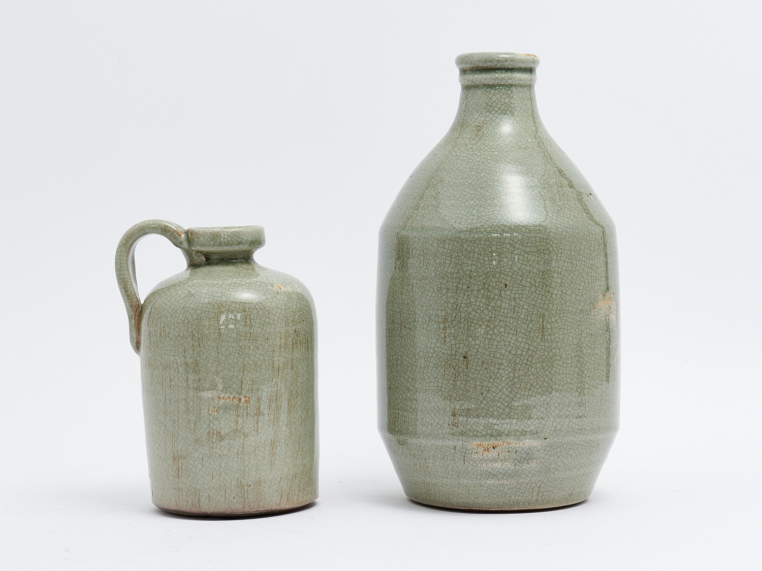 TWO CRACKLE GLAZE VESSELS H.28.5CM (TALLEST), LEONARD JOEL LOCAL DELIVERY: SMALL