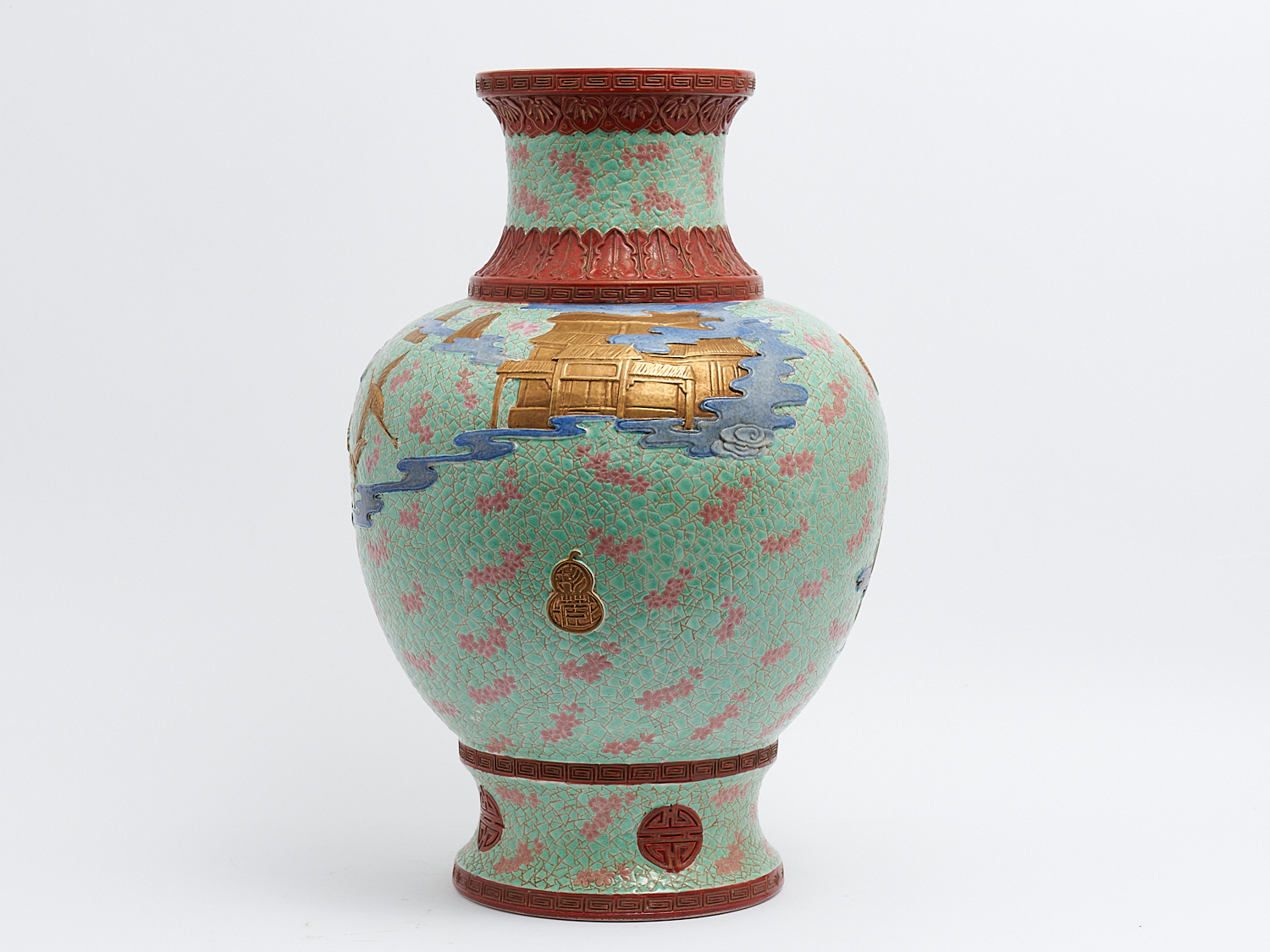 A CHINESE PORCELAIN VASE WITH GREEN GLAZE H.48CM, LEONARD JOEL LOCAL DELIVERY: MEDIUM