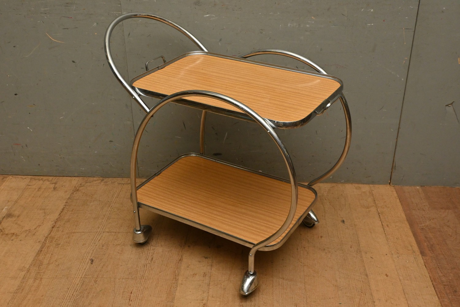 A MID CENTURY RANLEIGH TWO TIER AUTO TROLLEY (A/F) (79H X 80W X 46D CM) (LEONARD JOEL DELIVERY SIZE: LARGE)