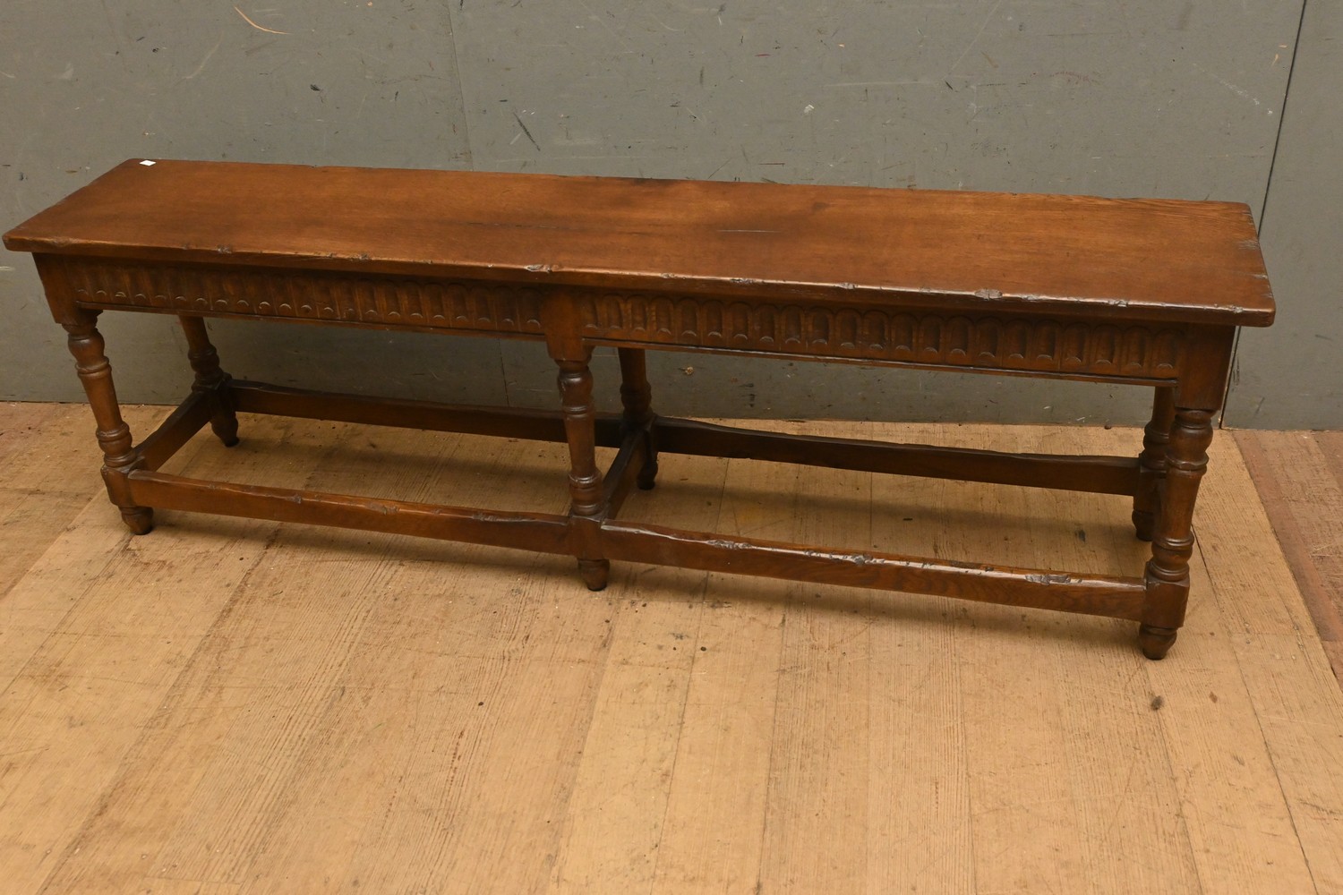 AN ENGLISH 17TH CENTURY STYLE OAK BENCH ( 48H X 150W X 28D CM) (LEONARD JOEL DELIVERY SIZE: X- LARGE)