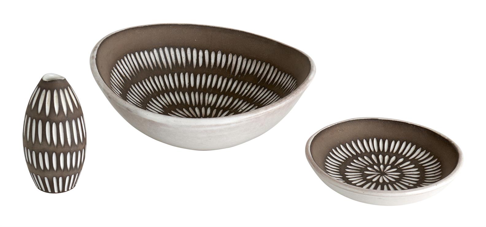 INGRID ATTERBERG SET OF THREE NEGRO SERIES CERAMICS FOR UPSALA-EKEBY, LEONARD JOEL LOCAL DELIVERY: SMALL
