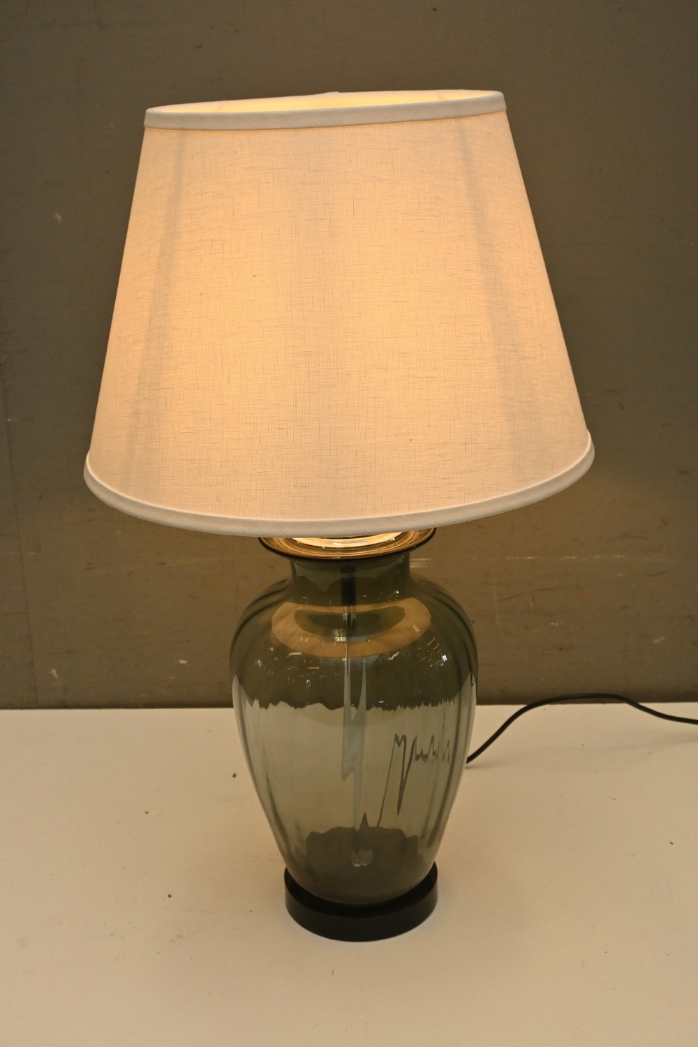 A CHROME & SMOKED GLASS TABLE LAMP (78H X 45D CM) (LEONARD JOEL DELIVERY SIZE: LARGE)