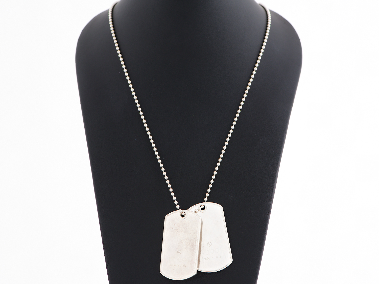 A DOG TAG NECKLACE IN STERLING SILVER BY GUCCI, LENGTH 600MM
