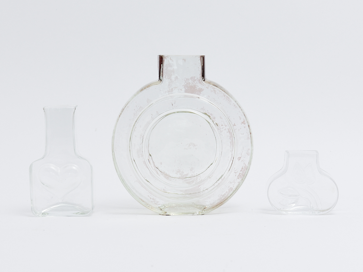 THREE MIDCENTURY FLAT-SIDED GLASS VASES, H.17CM (TALLEST), LEONARD JOEL LOCAL DELIVERY: SMALL