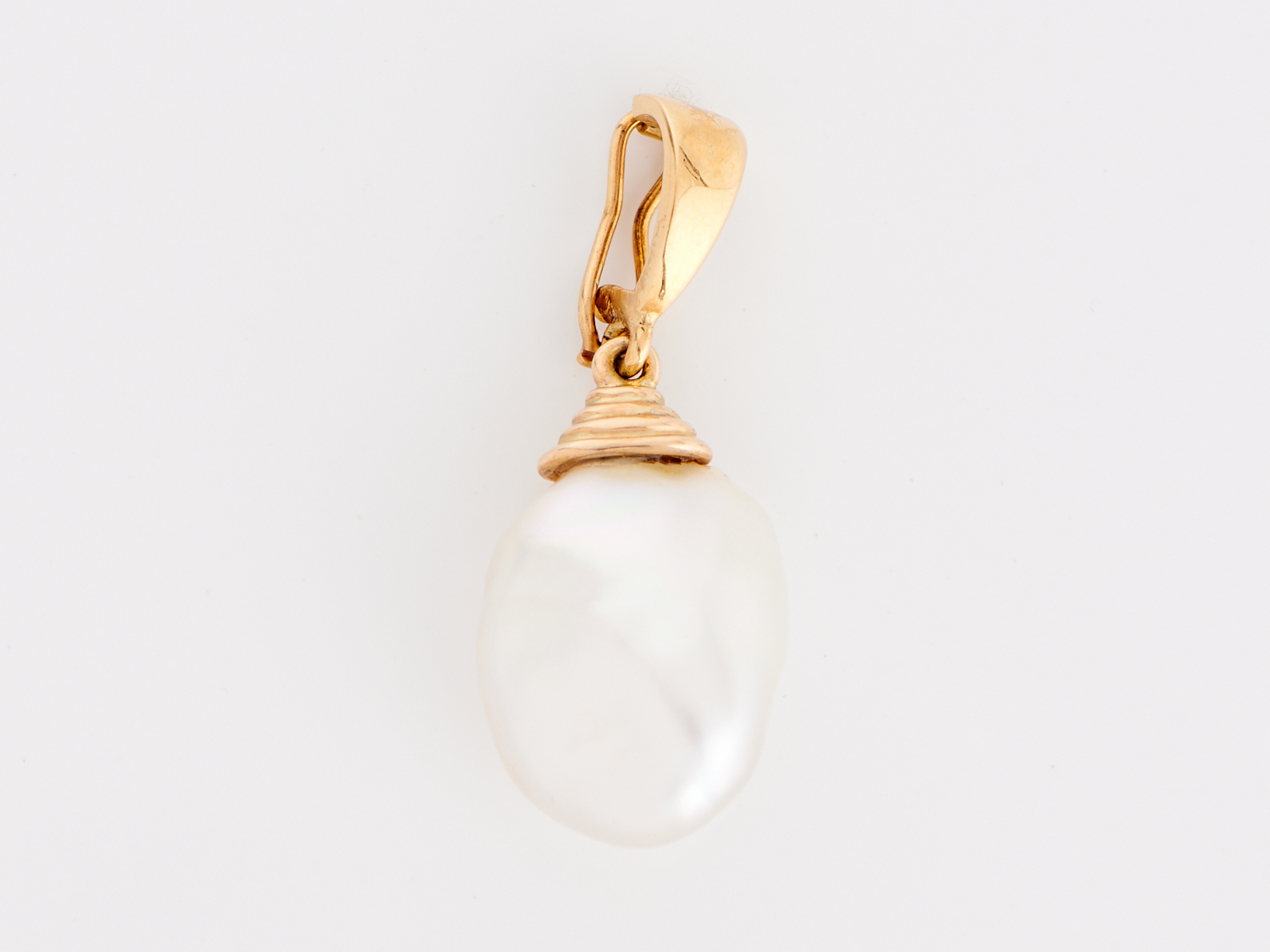 A BAROQUE PEARL DROP ENHANCER IN 18CT GOLD, SIZE 13.4 X 33MM, WEIGHT 4.9GMS