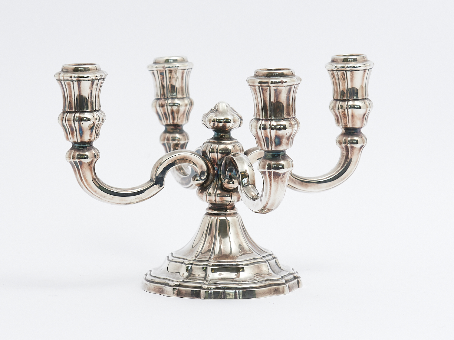 A STERLING SILVER FOUR SCONCE CANDELABRA H.17.5CM, LEONARD JOEL LOCAL DELIVERY: SMALL