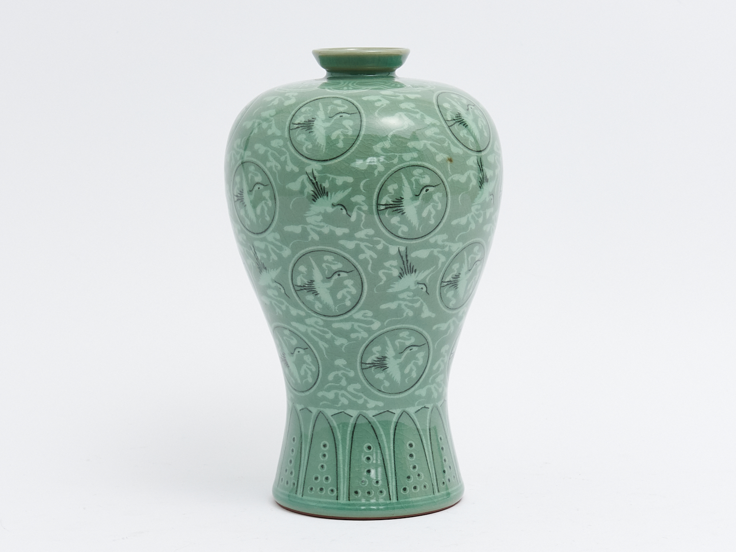 A KOREAN CERAMIC VASE WITH CRANES, H.26CM, LEONARD JOEL LOCAL DELIVERY: SMALL