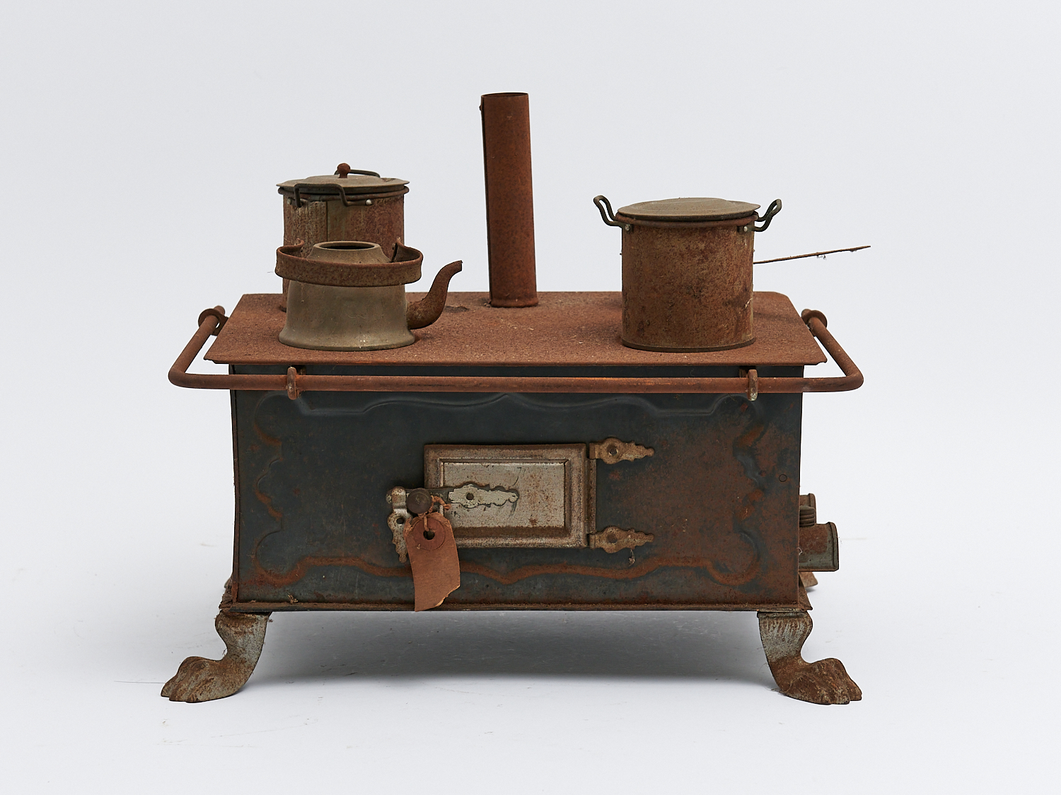 A METAL EARLY 20TH C. CHILD'S KEROSENE STOVE (A/F) H.26CM X W.31CM, LEONARD JOEL LOCAL DELIVERY: MEDIUM