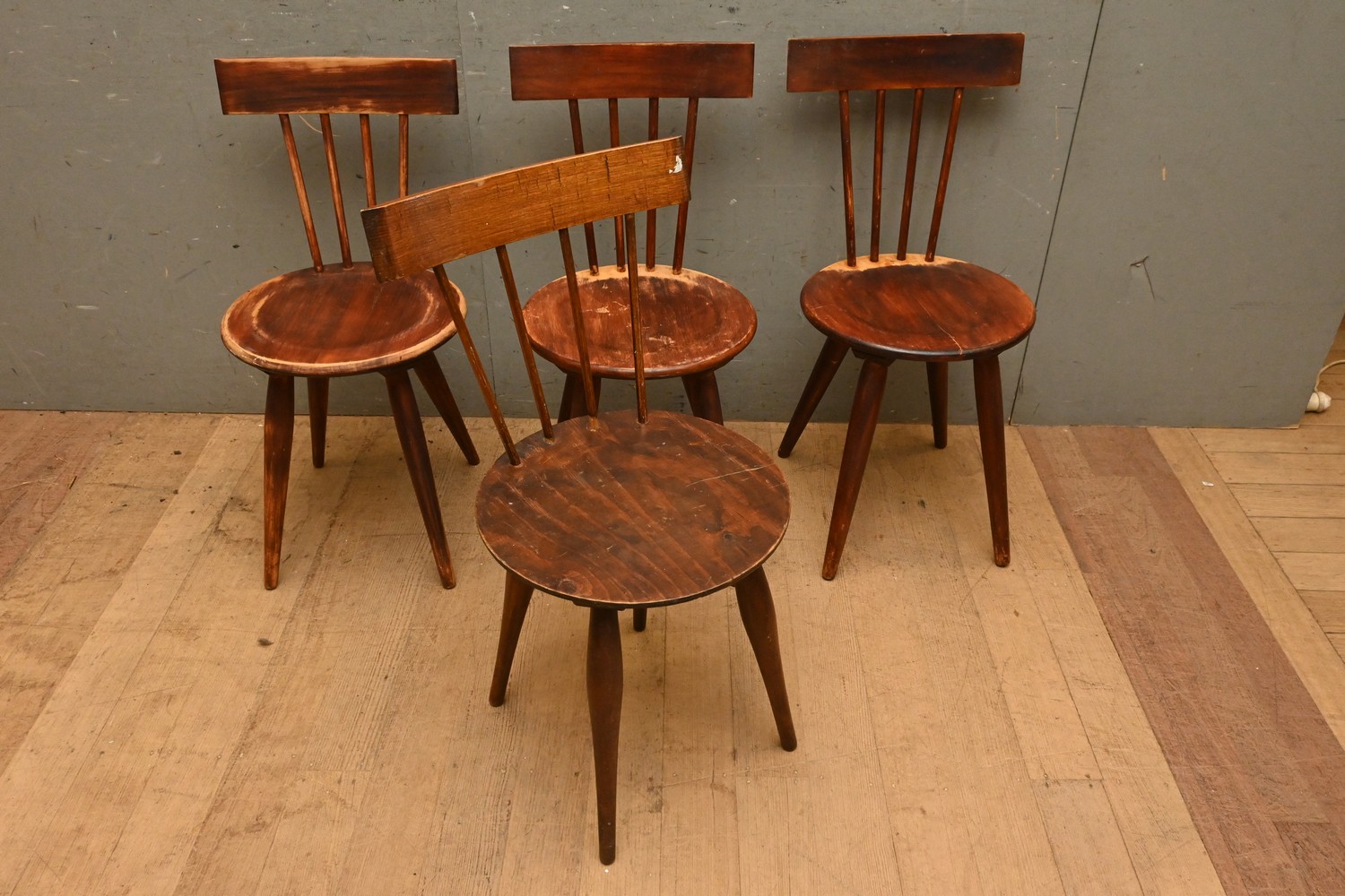 A HARLEQUIN SET OF MID CENTURY TIMBER DINING CHAIRS (A/F) ( 81H X 46W X 43D CM) (LEONARD JOEL DELIVERY SIZE: LARGE)