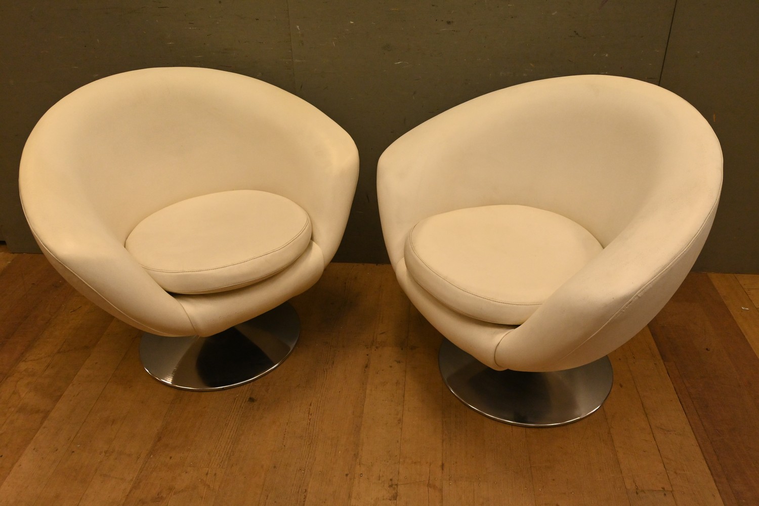 A PAIR OF SWEDISH VINYL LOUNGE CHAIRS (A/F) ( 77H X 87W X 70D CM) (LEONARD JOEL DELIVERY SIZE: X-LARGE)