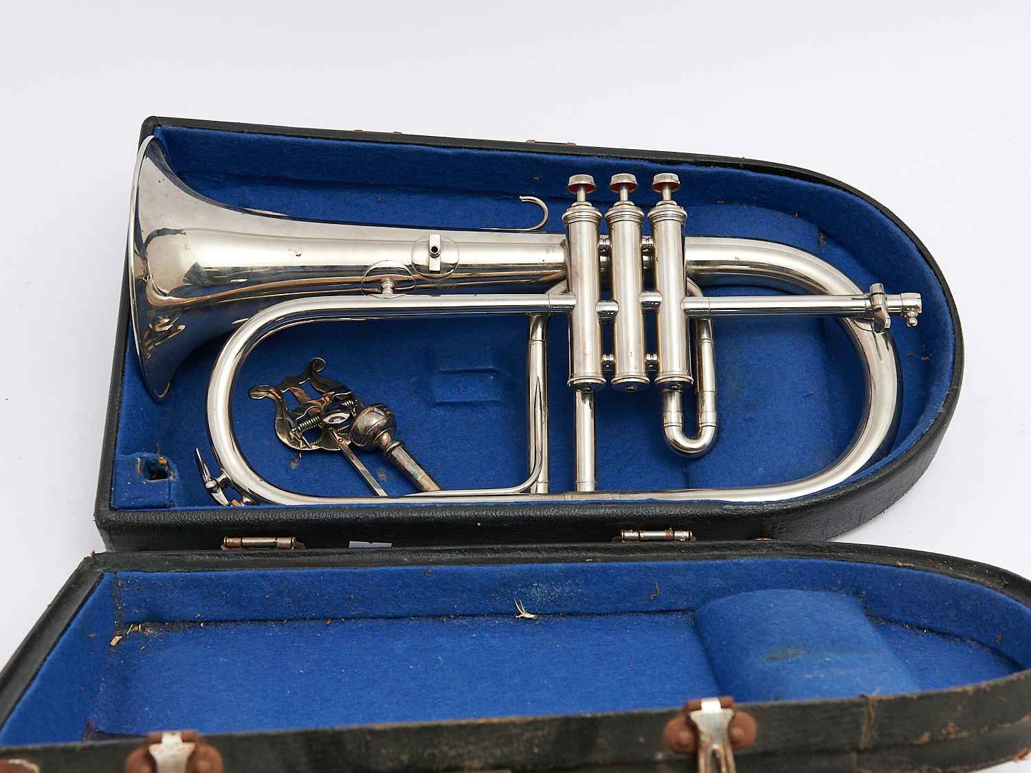 A BELGIAN FLUGELHORN BY C.MAHILLON BRUXELLES, CASED 11 L, L.42CM, LEONARD JOEL LOCAL DELIVERY: MEDIUM