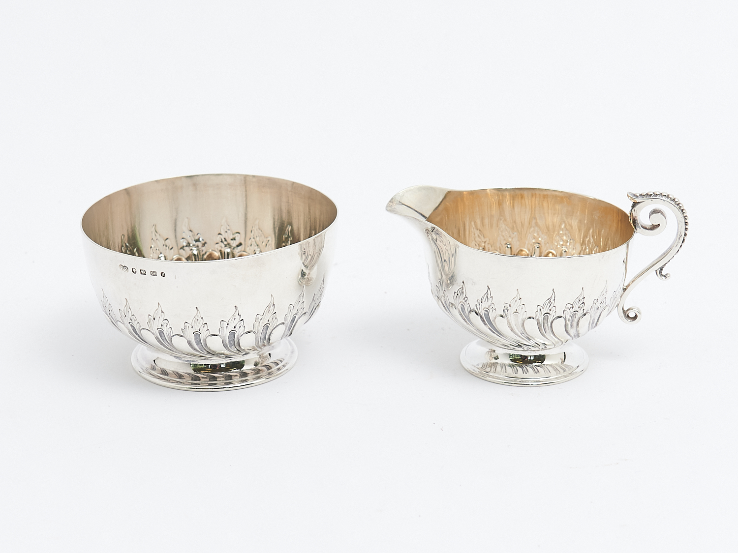 A VICTORIAN STERLING SILVER CREAMER AND SUGAR BOWL – 177 GRAMS, DIA.8CM, LEONARD JOEL LOCAL DELIVERY: SMALL