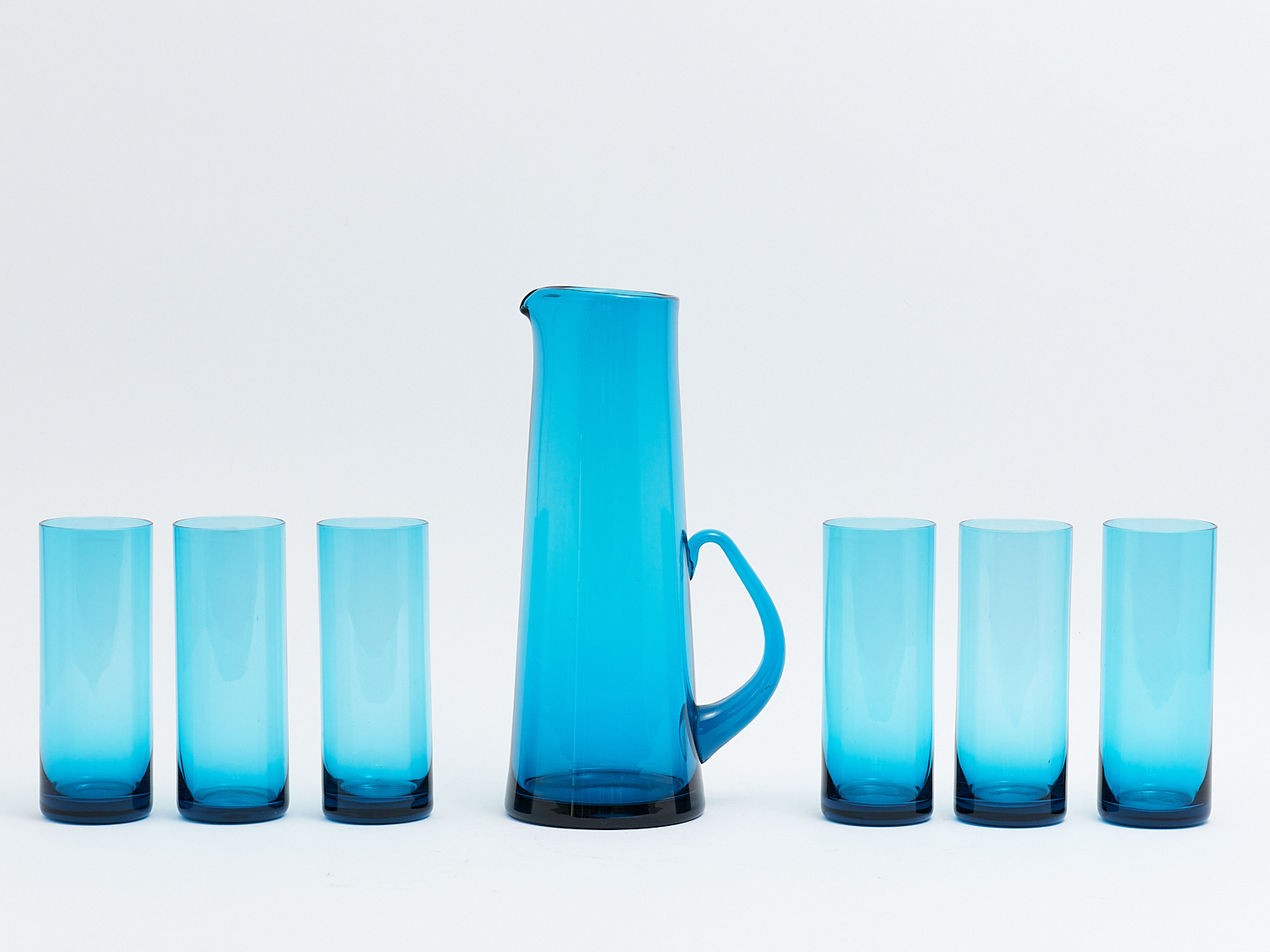 A RETRO SWEDISH SEVEN PIECE DRINK SET INCLUDING JUG AND MATCHED TUMBLERS, H.28CM, LEONARD JOEL LOCAL DELIVERY: MEDIUM
