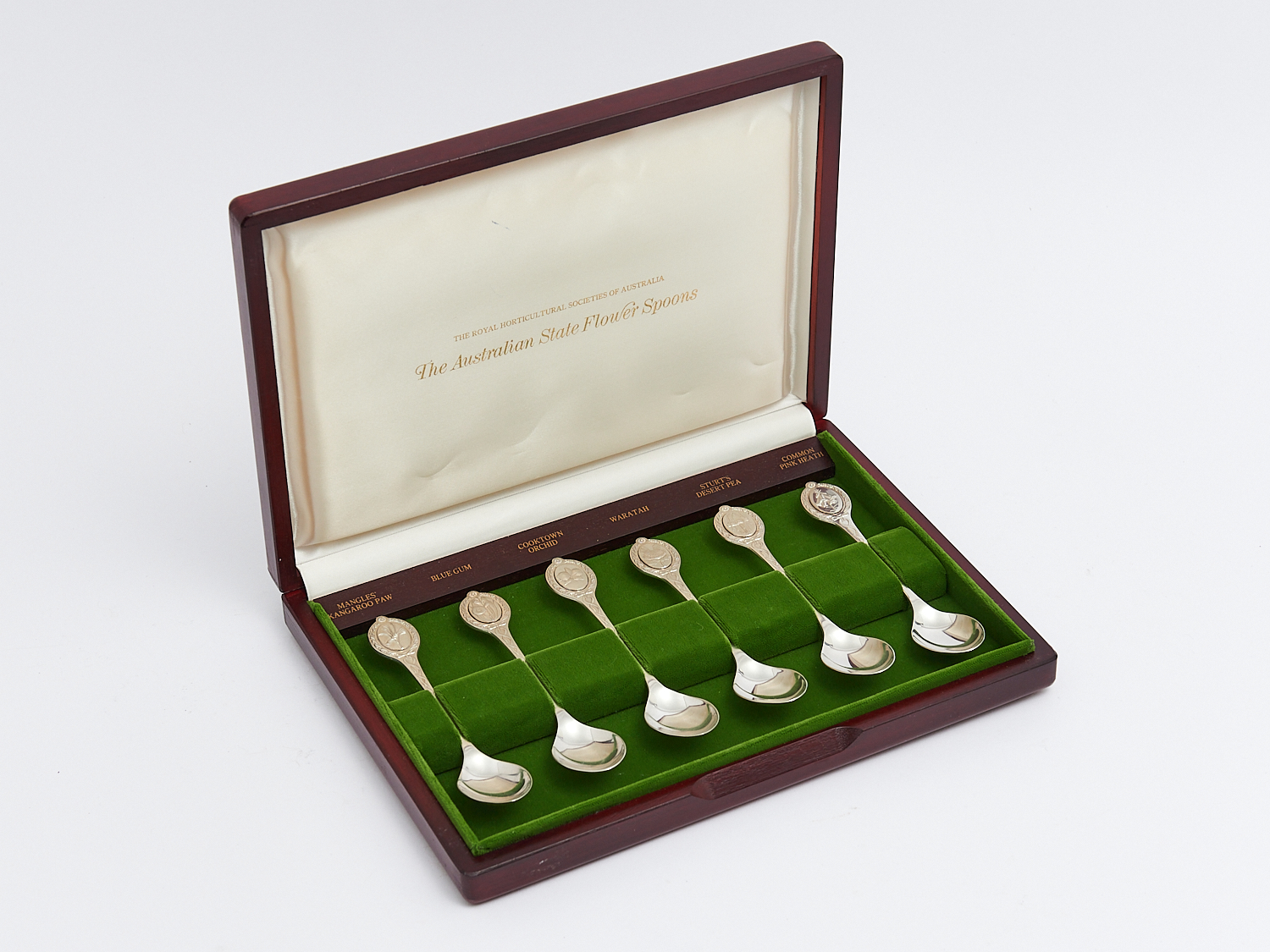 A SET OF SIX STERLING SILVER AUSTRALIAN STATE FLOWER SPOONS, LEONARD JOEL LOCAL DELIVERY: SMALL