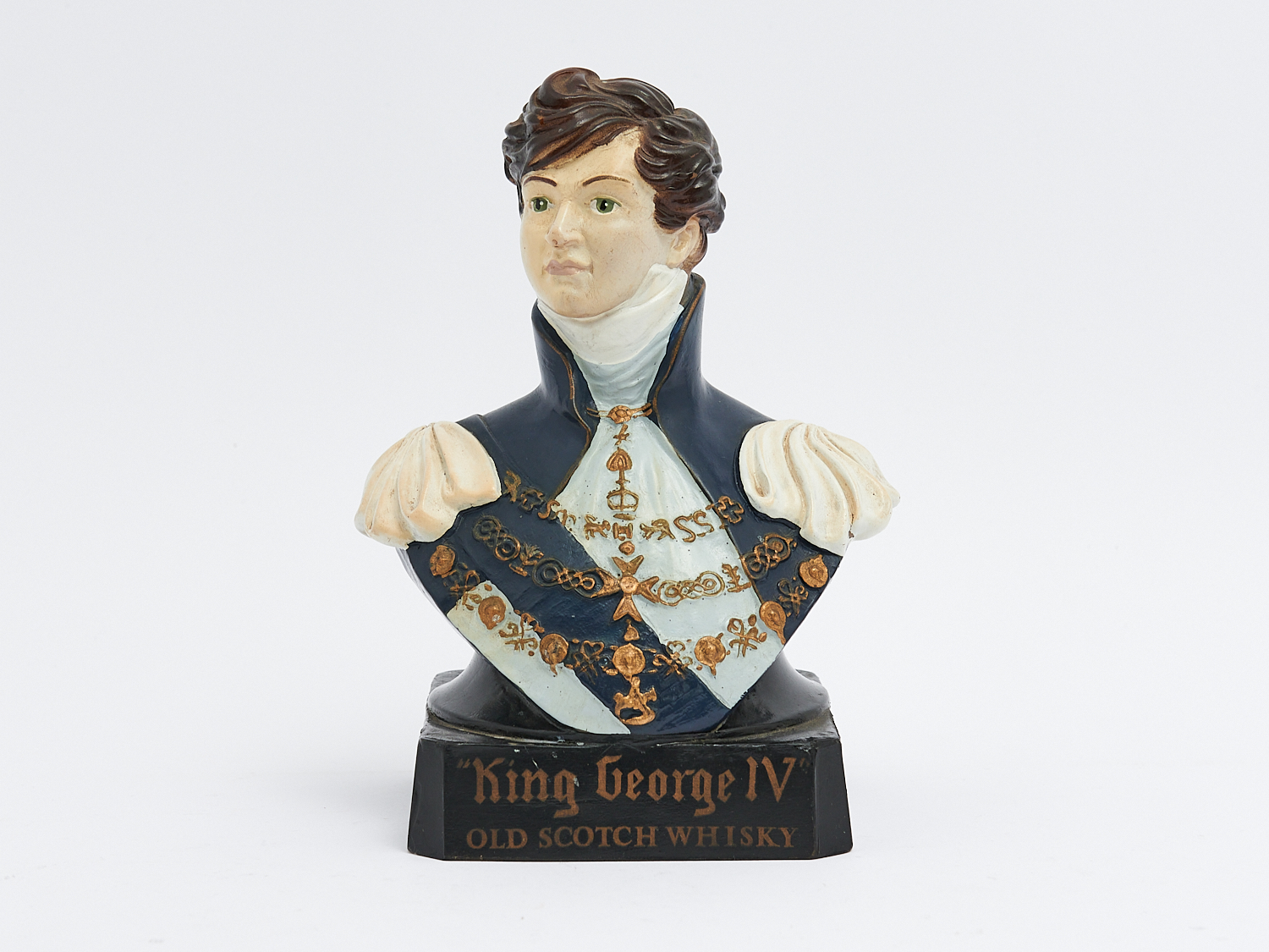 A KING GEORGE THE FOURTH OLD SCOTCH WHISKEY HAND PAINTED ADVERTISING FIGURE, H.22CM, LEONARD JOEL LOCAL DELIVERY: SMALL