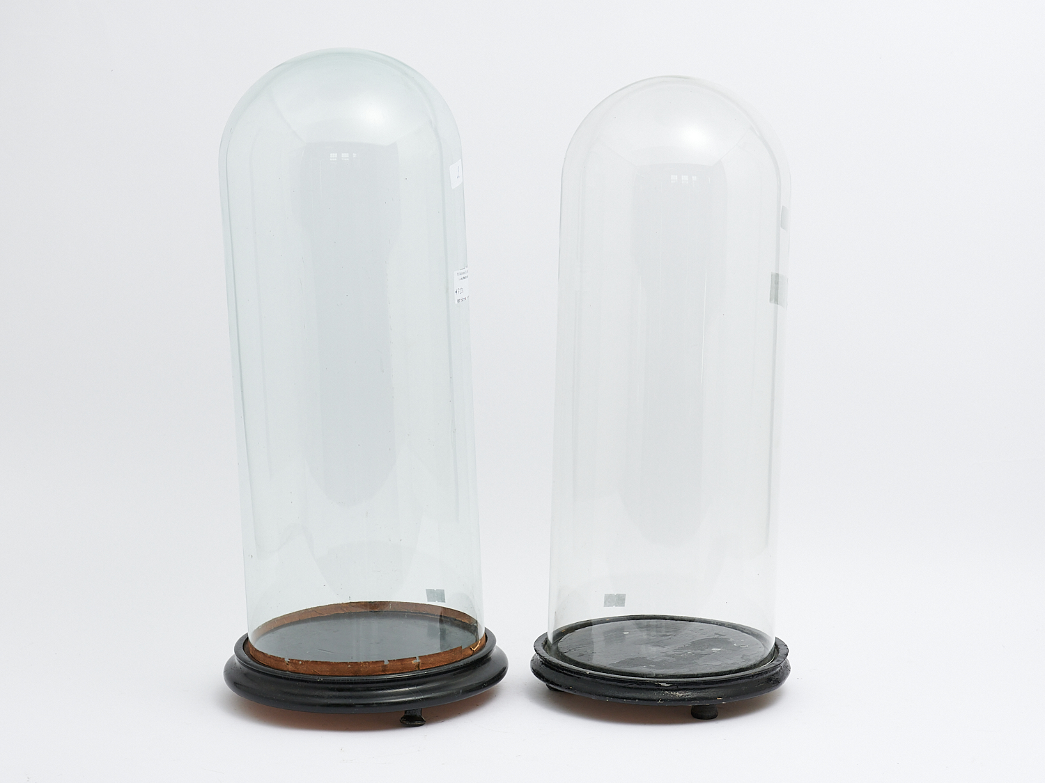A PAIR OF 19TH CENTURY FRENCH EBONISED WOOD BASED DISPLAY DOMES, H.54CM (TALLEST), LEONARD JOEL LOCAL DELIVERY: MEDIUM