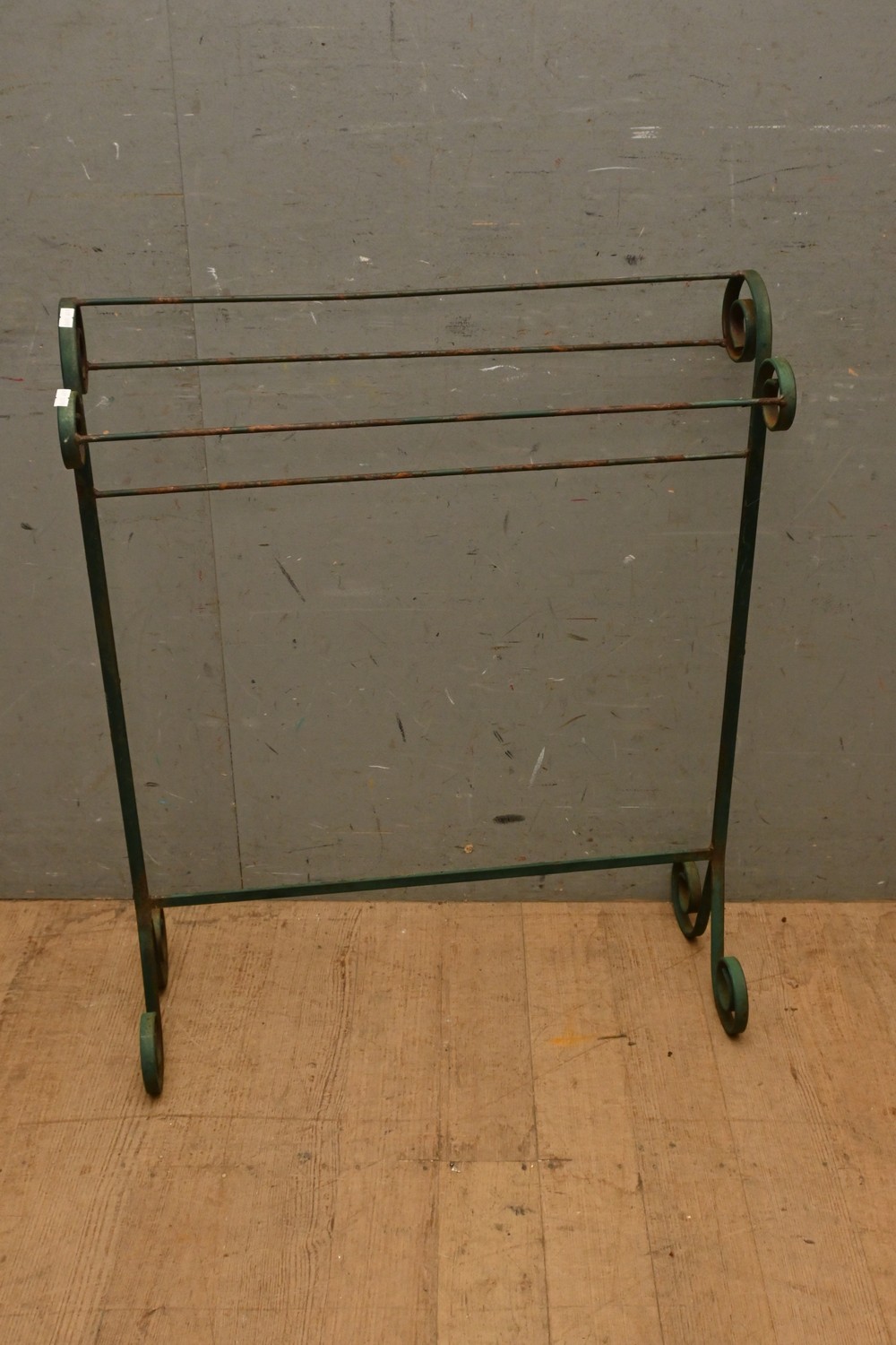 19TH-CENTURY PAINTED WROUGHT IRON TOWEL RAIL (A/F) (H86 X W70 X D29 CM) (LEONARD JOEL DELIVERY SIZE: LARGE)