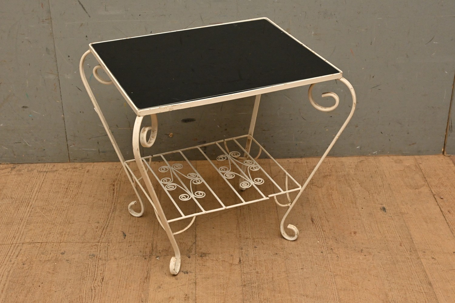 A RETRO WHITE BLACK GLASS TOPPED OCCASIONAL TABLE (46H X 51W X 44D CM) (LEONARD JOEL DELIVERY SIZE: LARGE)