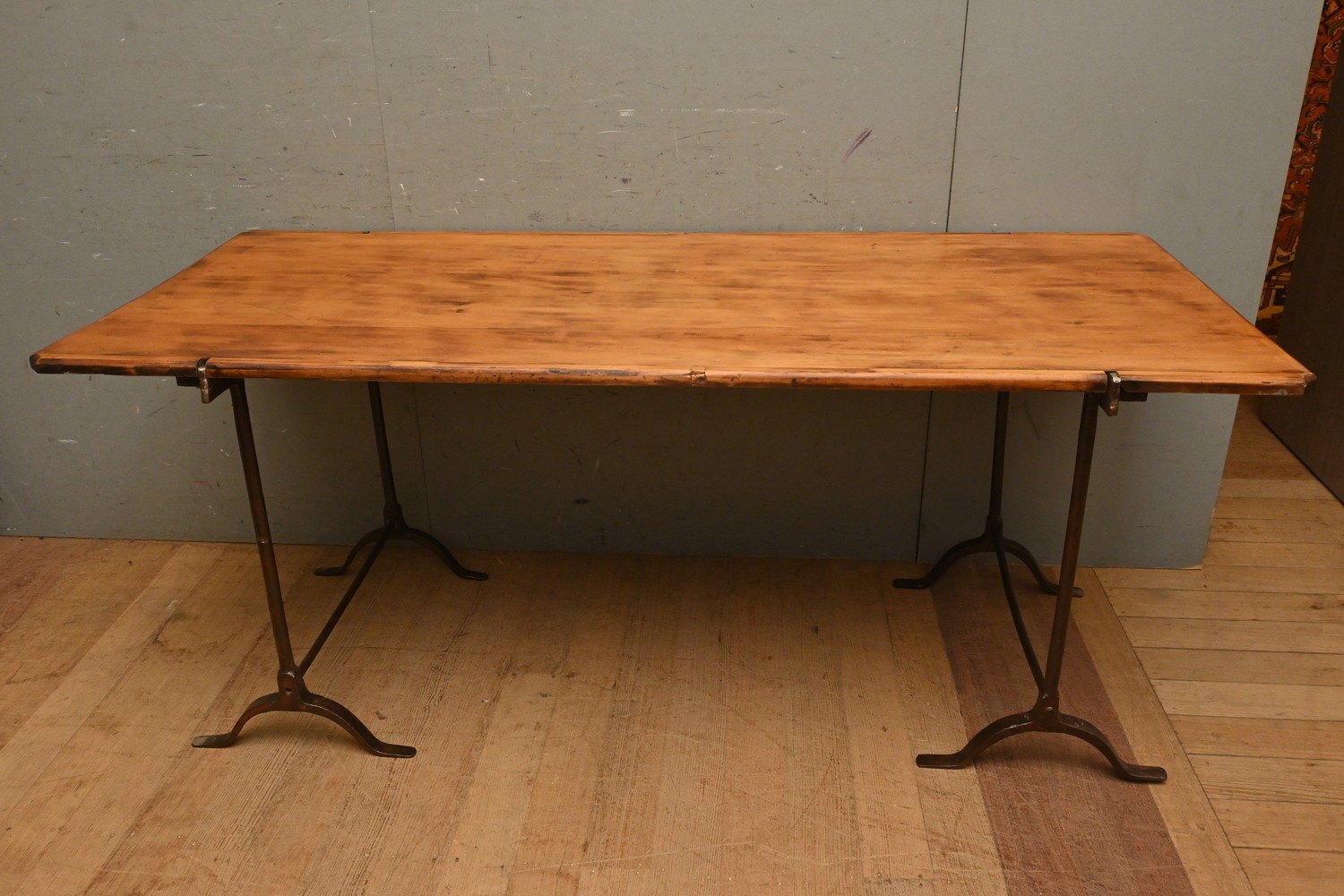 AN AUSTRALIAN PINE TOPPED TRESTLE TABLE CIRCA 1913 (76H X 180W X 78D CM) (LEONARD JOEL DELIVERY SIZE: X-LARGE)