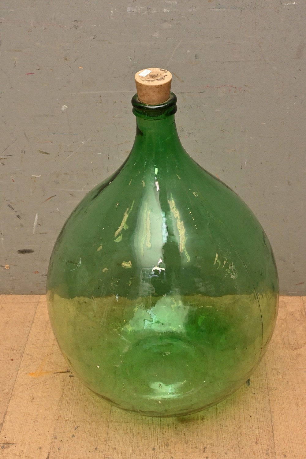 A LARGE 1920'S ITALIAN GREEN GLASS DEMIJOHN (H70 X D39 CM) (LEONARD JOEL DELIVERY SIZE: LARGE)