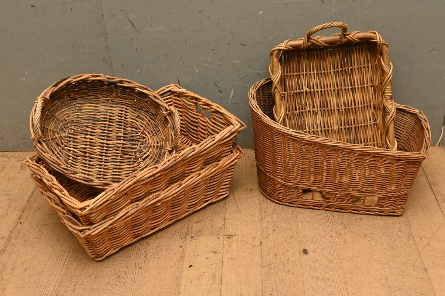 COLLECTION OF FIVE VINTAGE WOVEN CANE BASKETS ( 33H X 54W X 35D CM) (LEONARD JOEL DELIVERY SIZE: LARGE)