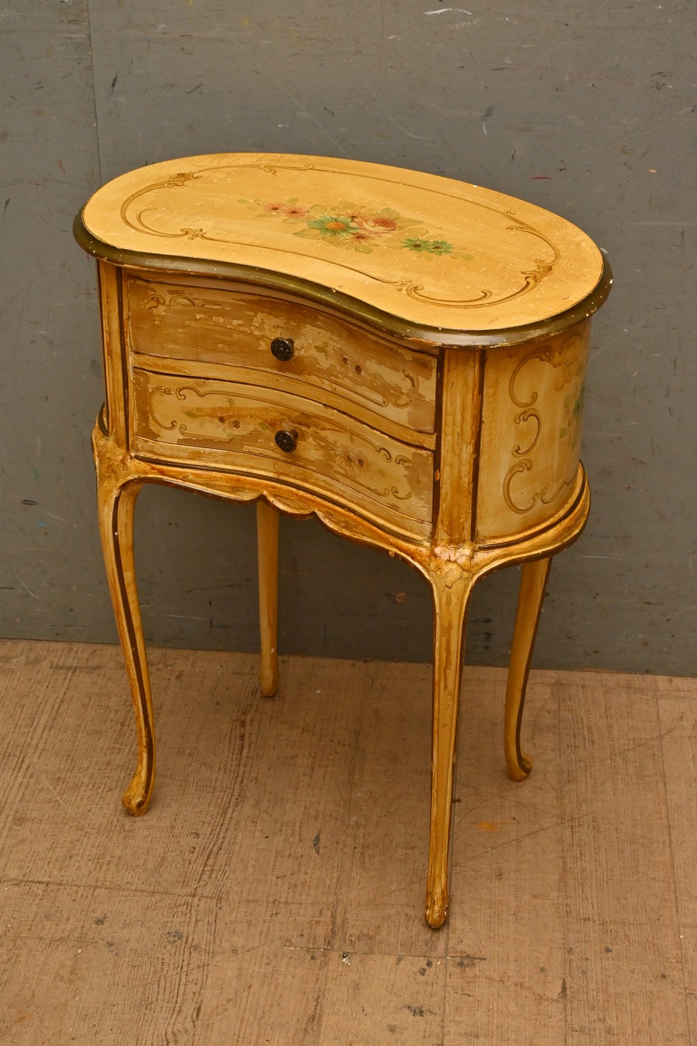A FRENCH HAND PAINTED TWO DRAW KIDNEY SHAPE SIDE TABLE (62H X 48W X 28D CM) (LEONARD JOEL DELIVERY SIZE: LARGE)