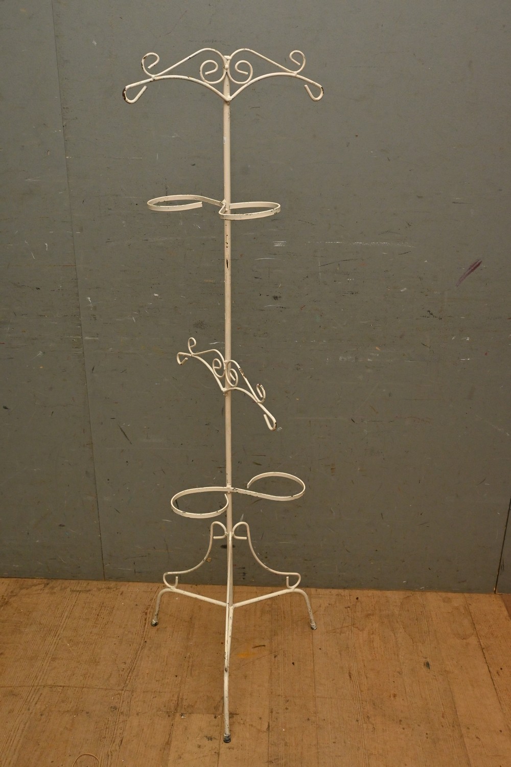 A WHITE IRON PLANT STAND (A/F) (H139 X W39 CM) (LEONARD JOEL DELIVERY SIZE: LARGE)
