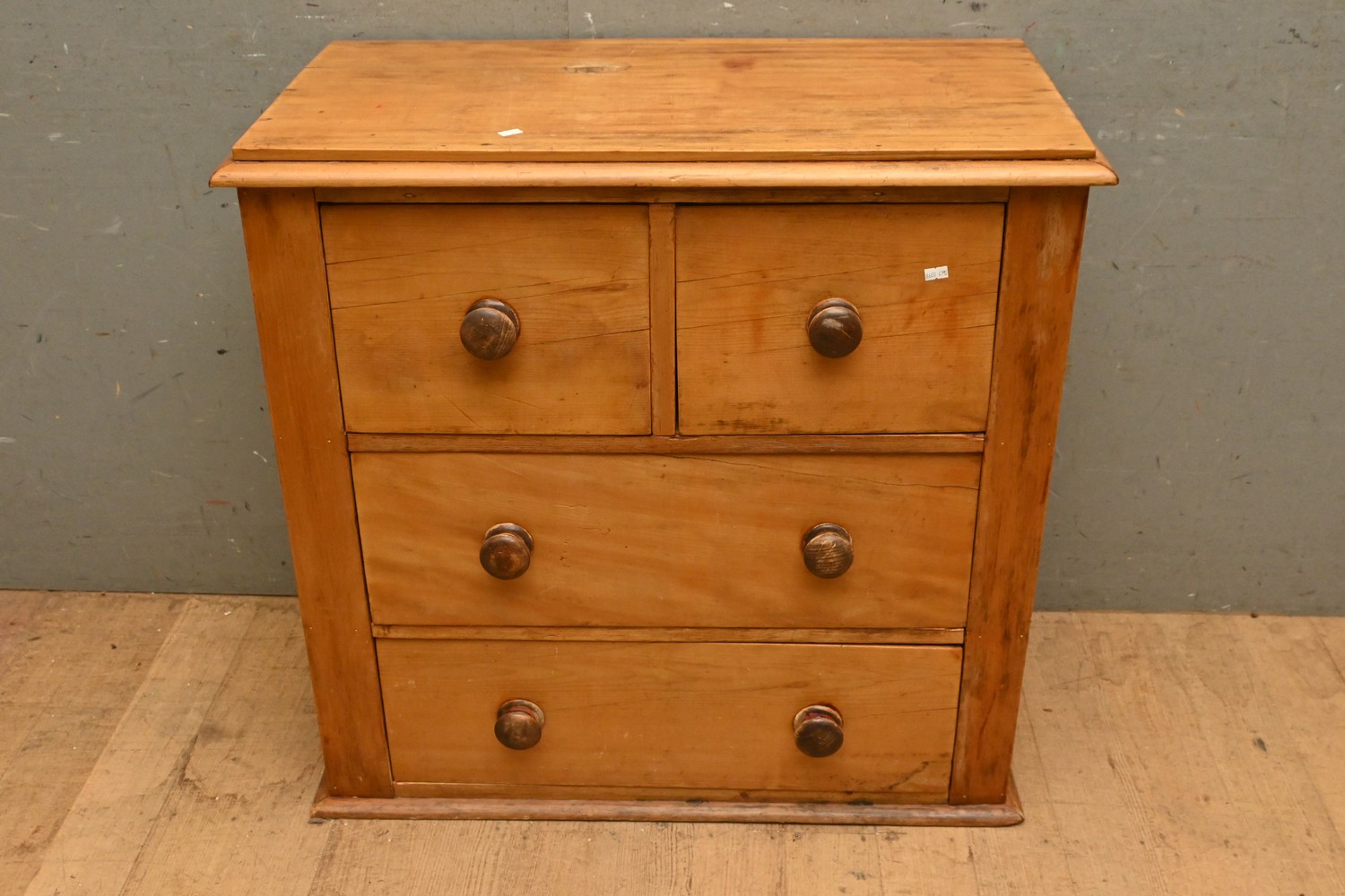 A VICTORIAN FOUR DRAWER PINE CHEST OF DRAWERS (A/F) ( 83H X 85W X 44D CM) (LEONARD JOEL DELIVERY SIZE: X-LARGE)