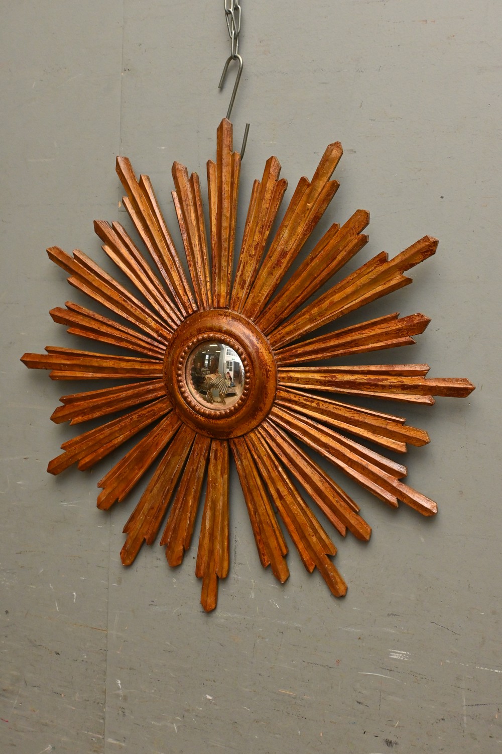 A FRENCH CARVED GILTWOLD STARBURST MIRROR (A/F) (73D CM) (LEONARD JOEL DELIVERY SIZE: LARGE)