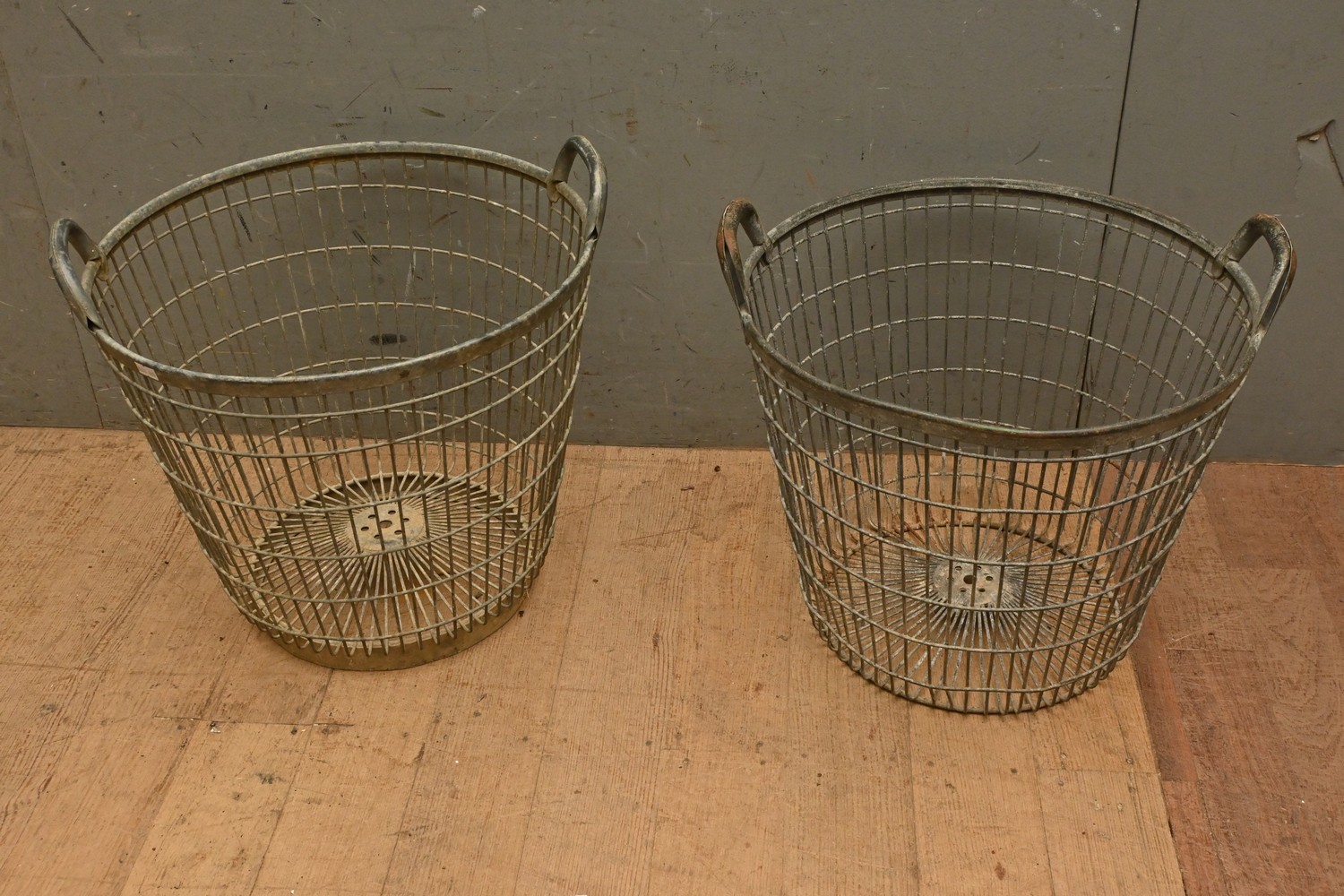 PAIR OF 1900S FRENCH GALVANISED WIRE FORM FRUIT BASKETS (H43 X D48 CM) (LEONARD JOEL DELIVERY SIZE: LARGE)