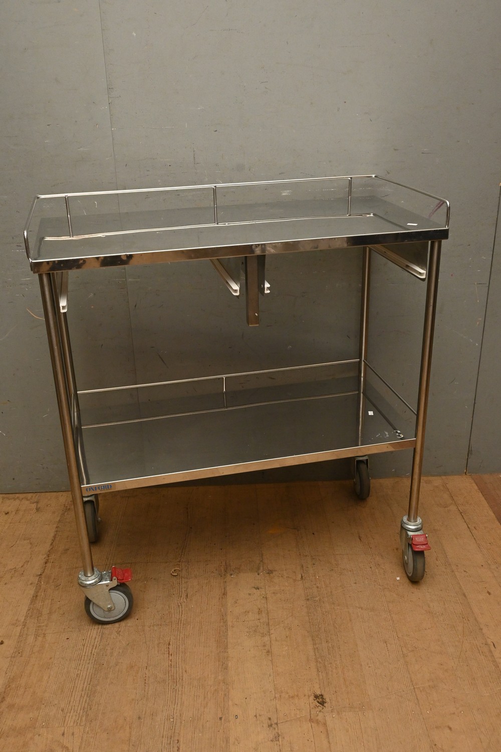 STAINLESS STEEL TWO TIER TROLLEY (A/F) (H104 X W94 X D47 CM) (LEONARD JOEL DELIVERY SIZE: LARGE)