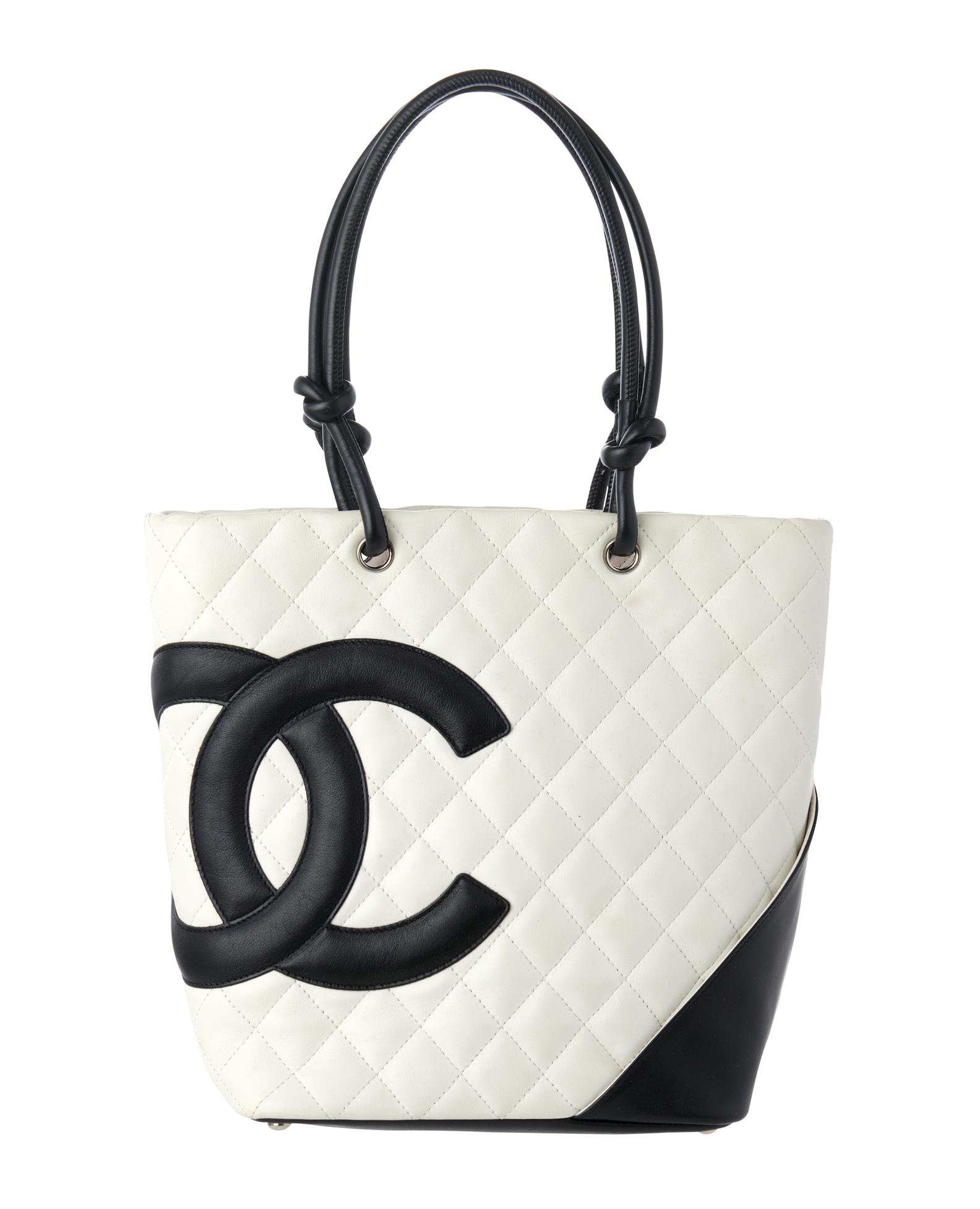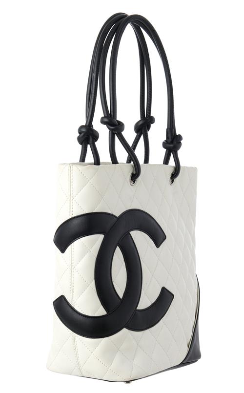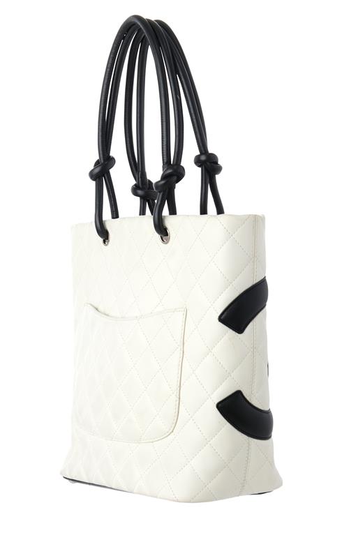 Styled in quilted white leather with black leather trim and applied 'CC' logo, 20 x 24 x 11cm