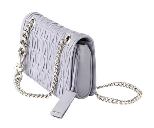 Styled in lavender nappa leather with chain shoulder strap and silver tone metal hardware, 25.5 x 17 x 7cm.