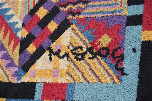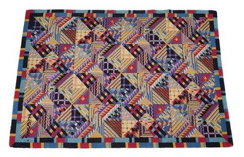 Diamond coloured patterns with black backgroud. 100% pure wool.