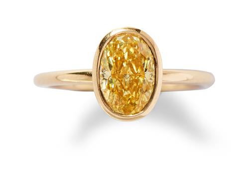 Collet-set with an oval modified brilliant-cut fancy intense yellow diamond weighing 1.87 carats, mounted in 18ct gold, size K1/2, numbered, signed Tiffany & Co.