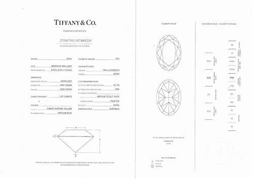 a Tiffany & Co. Diamond Certificate numbered 27196799/L07300210, stating that the 1.87 carat diamond is fancy intense yellow colour, VS1 clarity, laser inscribed;