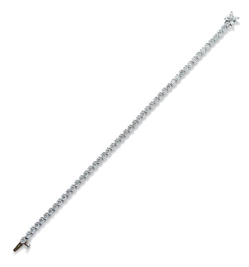 Composed of a line of 48 claw-set brilliant-cut diamonds, completed by a concealed box clasp centring a floral motif decorated with marquise-cut diamonds, the diamonds together weighing approximately 4.60 carats, mounted in platinum, length 175mm, signed T&Co. for Tiffany & Co.