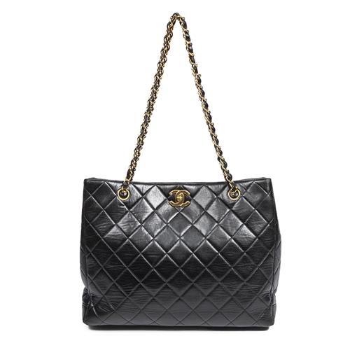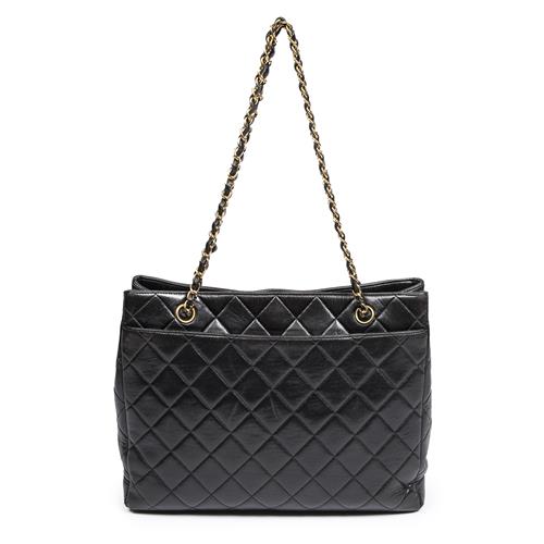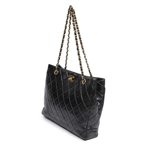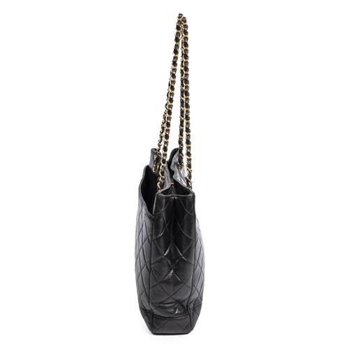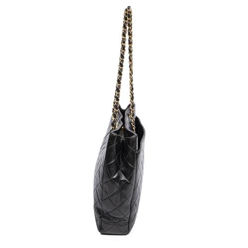 CHANEL, VINTAGE STRAIGHT SINGLE FLAP SHOULDER BAG - Styled in black quilted lambskin leather with interlaced chain shoulder strap an...