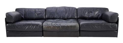 All three pieces off this sofa are well worn, the leather has signs fading and crackling, consistent with age and use. There is a 6 centimetre tear to the corner of the sofa behind the cushion. Other than this all three parts are structurally sound and in good condition.