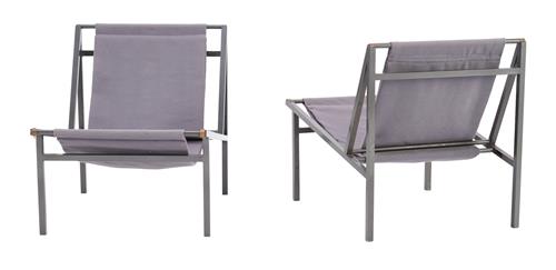 Grey canvas on powder coated metal frame.