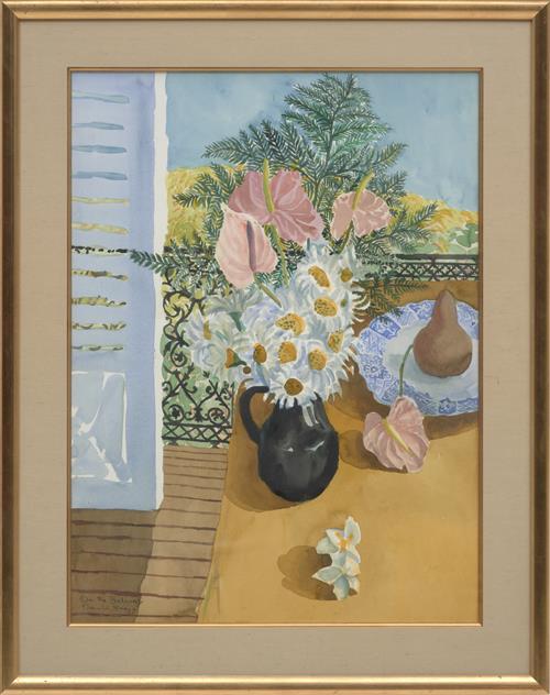 signed, titled and dated lower left: On the Balcony / Donald Friend / - 86