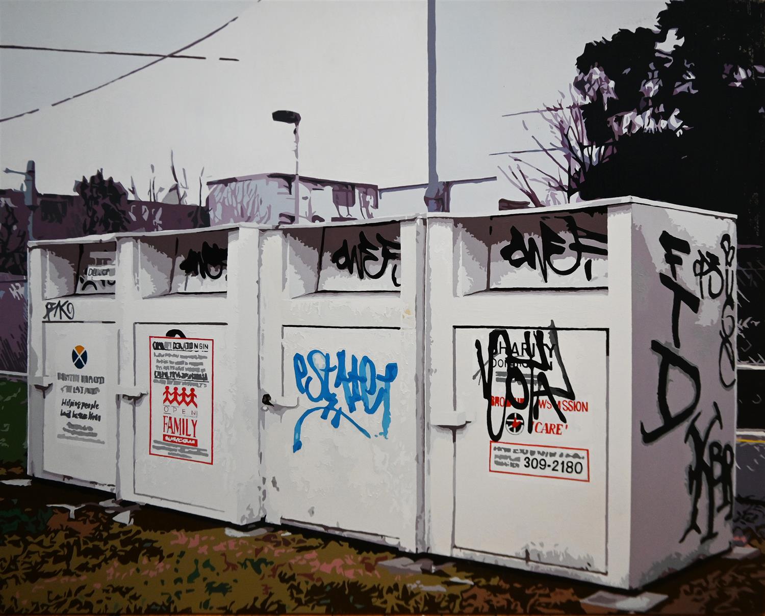 Bubble wrap inprint onto the paint surface is evident in upper corners of the work.
