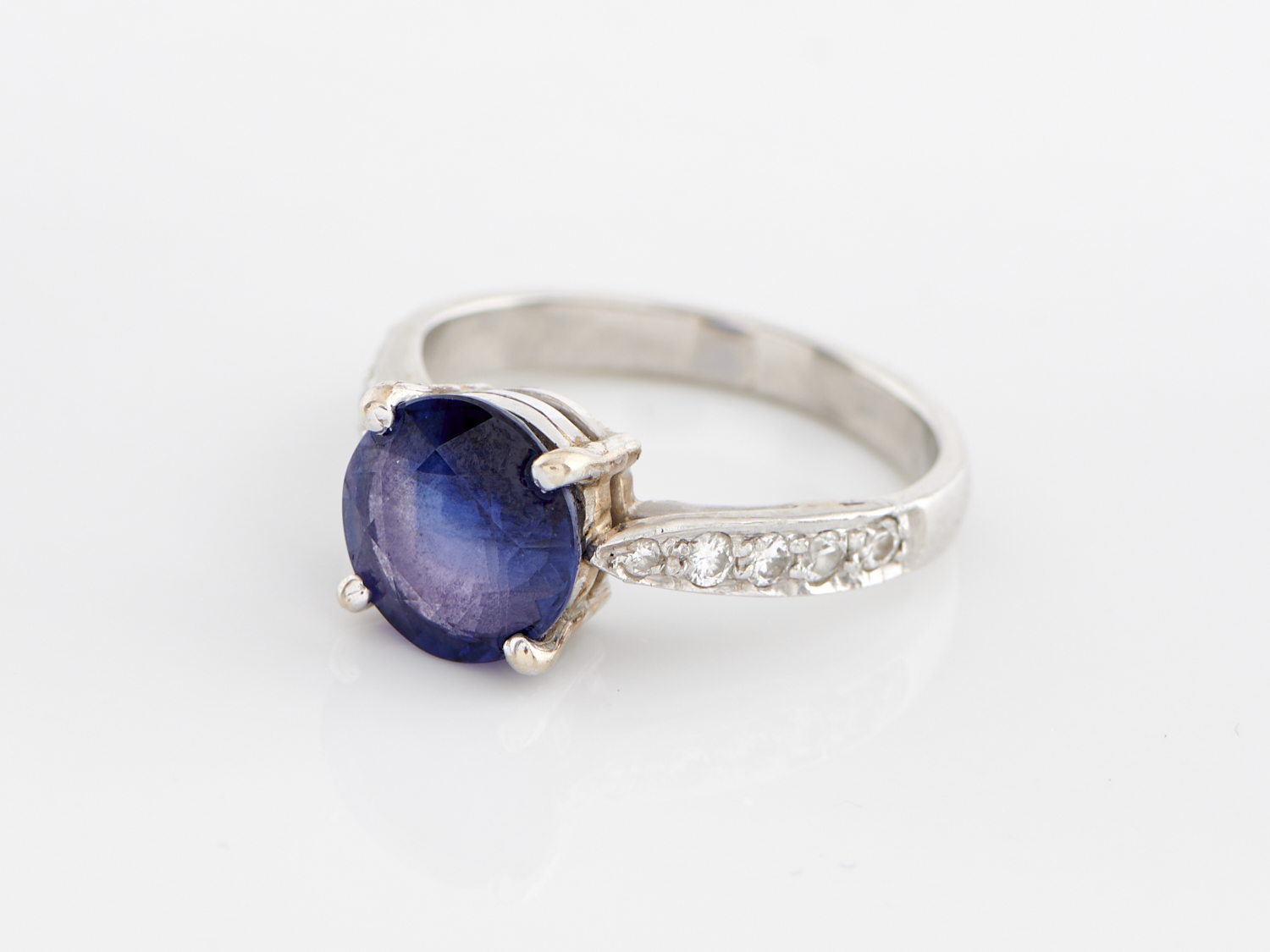 A SAPPHIRE AND DIAMOND RING IN PLATINUM, THE SAPPHIRE WEIGHING APPROXIMATELY 2.90CTS, THE DIAMONDS TOTALLING APPROXIMATELY 0.21CTS, SIZE K, 4.90GMS