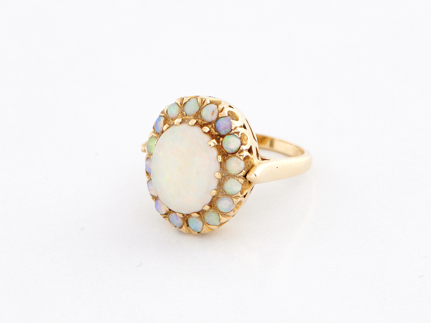 AN OPAL CLUSTER RING IN 14CT GOLD, RING SIZE L-M, WEIGHT 8.3GMS