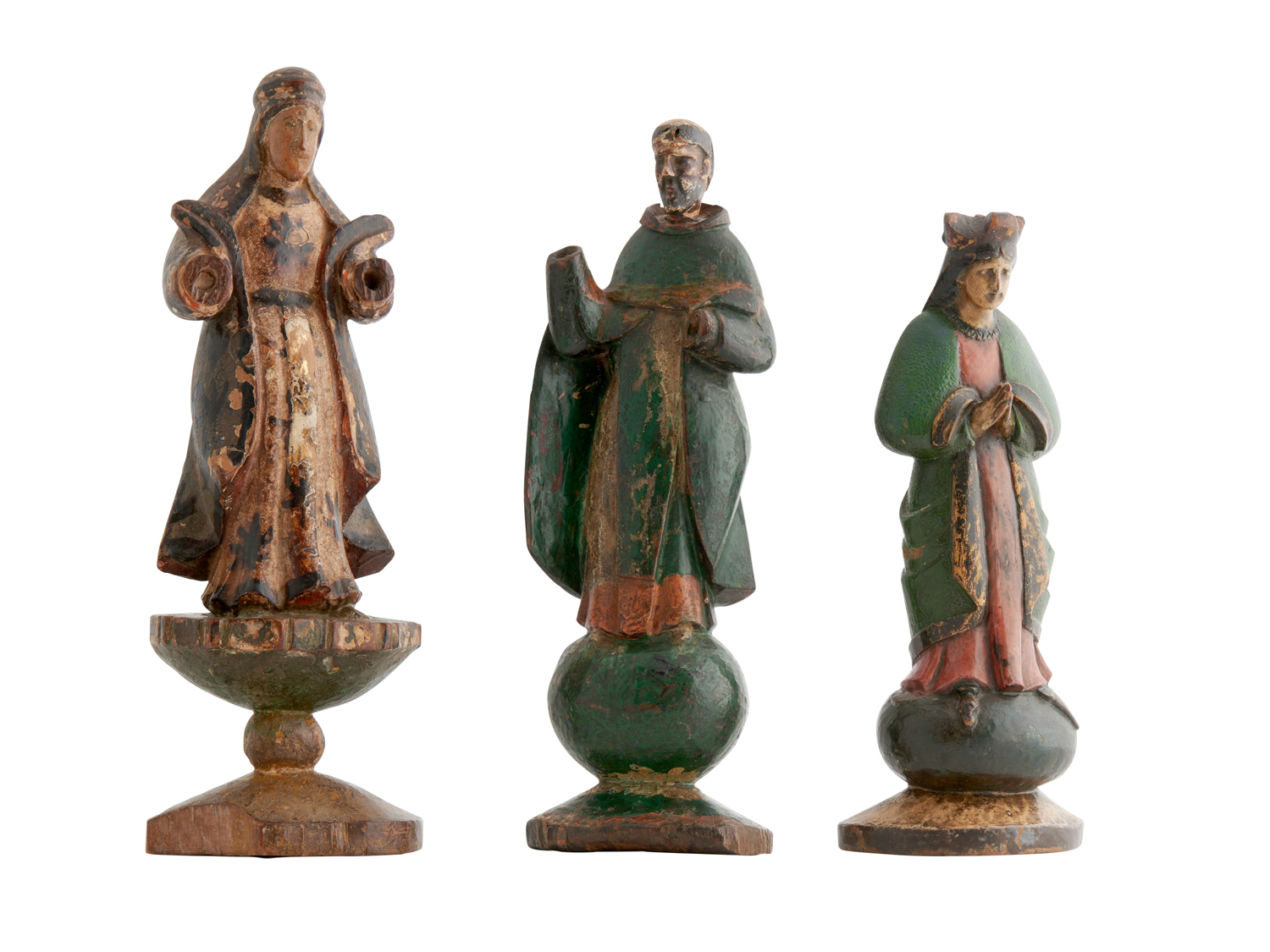 THREE SIMILAR EUROPEAN CARVED AND PAINTED FIGURES OF SAINTS OR OTHER RELIGIOUS FIGURES (LEONARD JOEL LOCAL DELIVERY: SMALL)